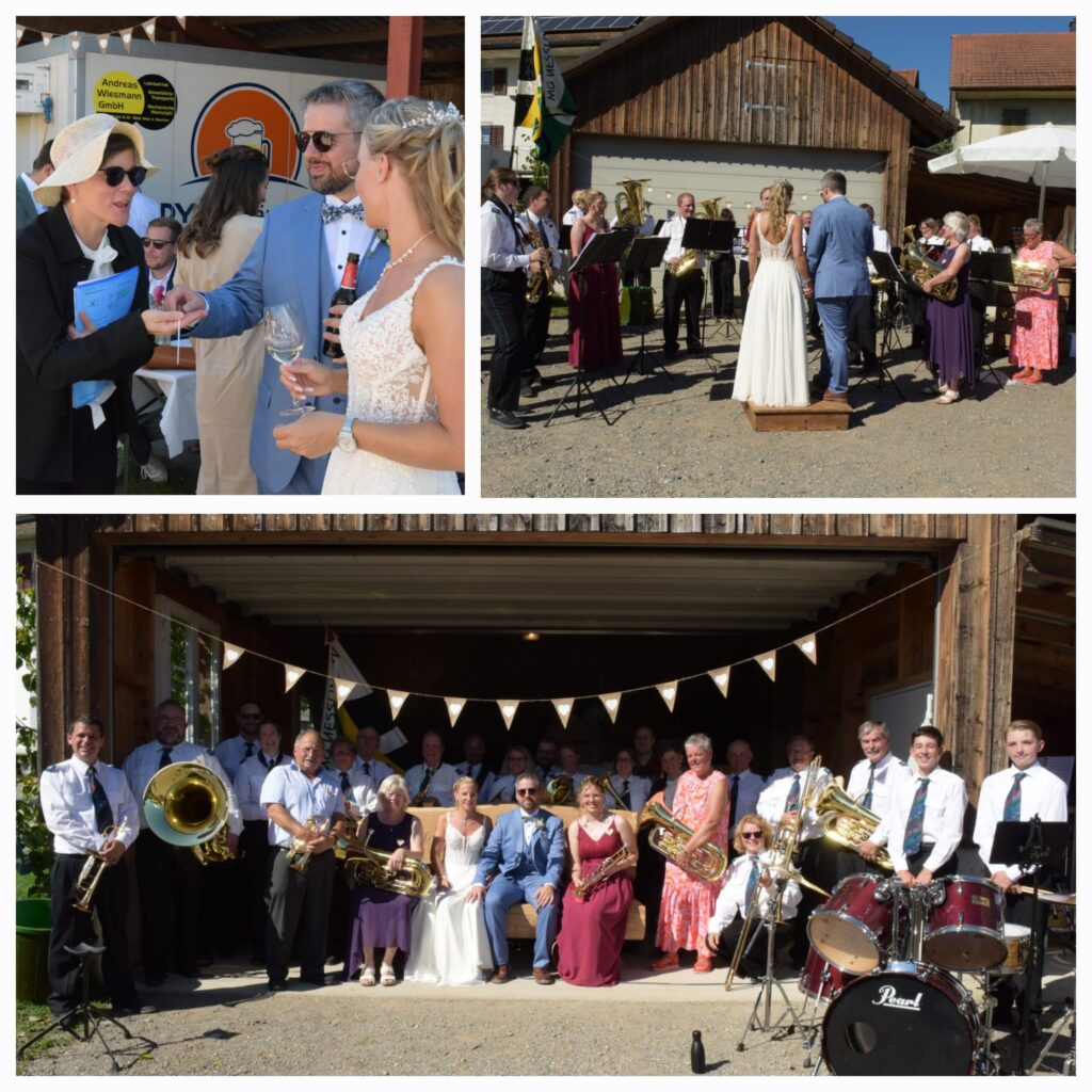 Am Samstag, 20. September, durften wir an der Hochzeit von Tanja und Roger Rieser-Ritter teilnehmen. Gemeinsam mit der Guggenmusik, in der Tanja nebst unserem Verein aktiv mitspielt, eröffneten wir das Fest musikalisch und trugen das Stück „Ewigi Liebi“ vor.
